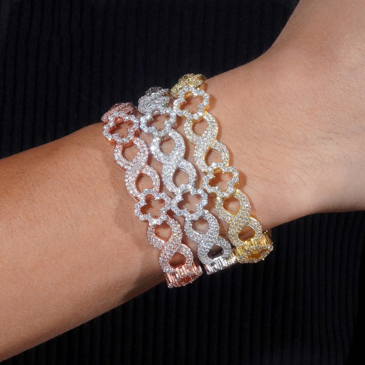 13mm Clover Cuban Chain S925 VVS Synthetic Moissanite Hip Hop Tennis Bracelet