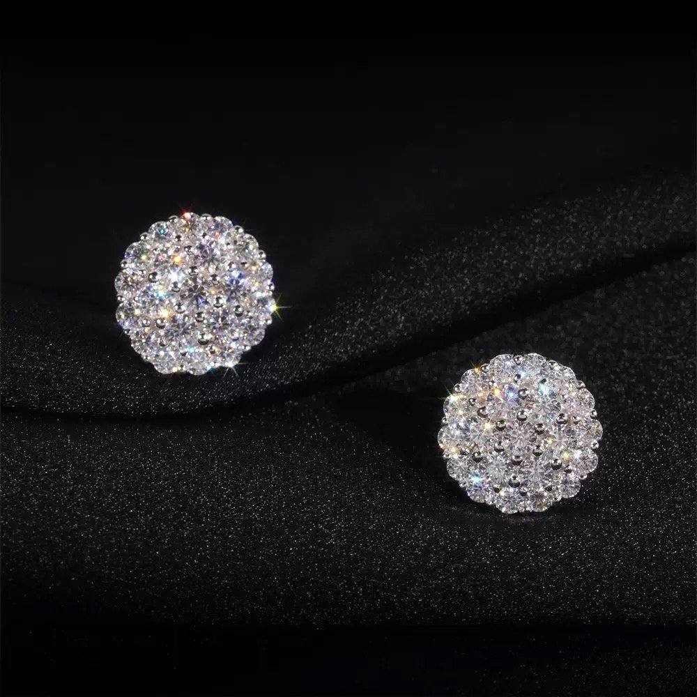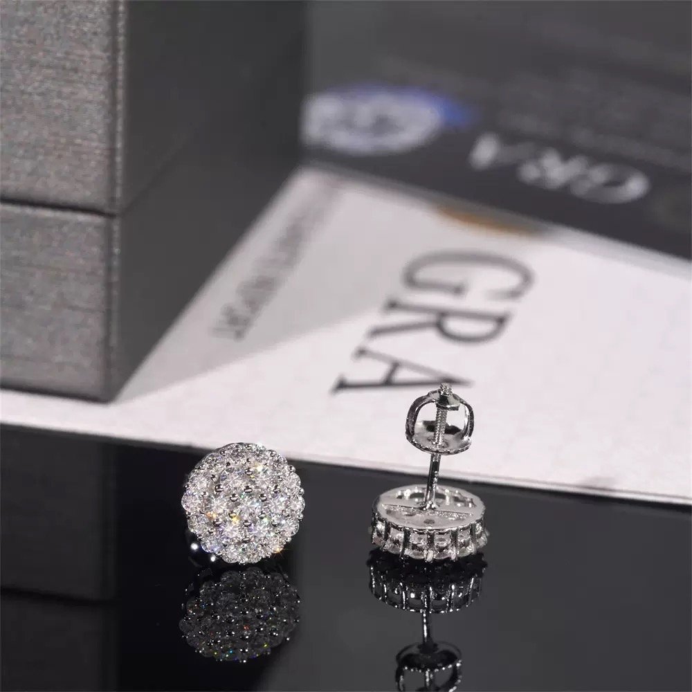 “925 Sterling Silver Moissanite Hip Hop Earrings Iced Out Halo Design Unisex Luxury Gift