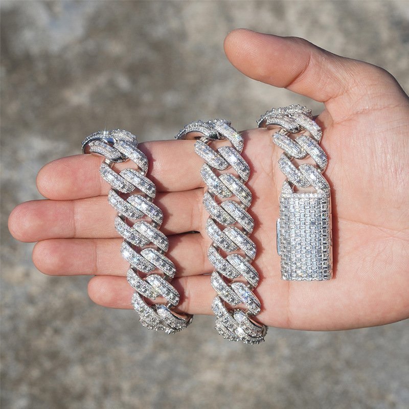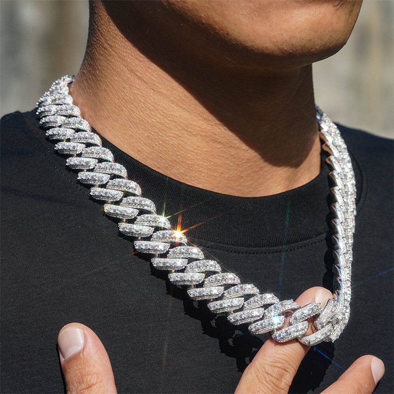 20MM 4 Row 925S & VVS Moissanite Prong Cuban Link Chain