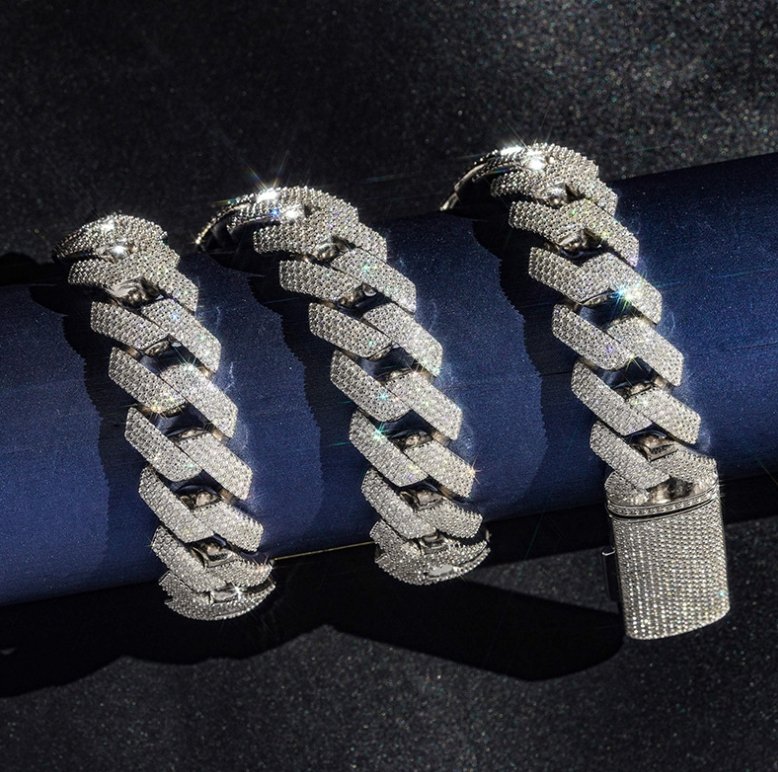 20MM 4 Row 925S & VVS Moissanite Prong Cuban Link Chain